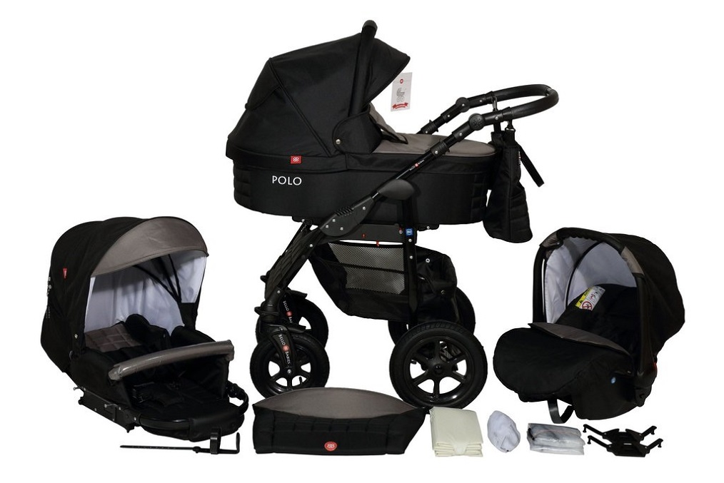 Bello Babies Polo Bērnu ratiņi col.3 Melna eco āda